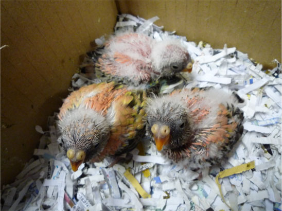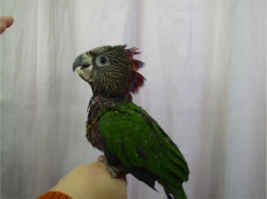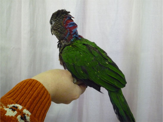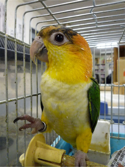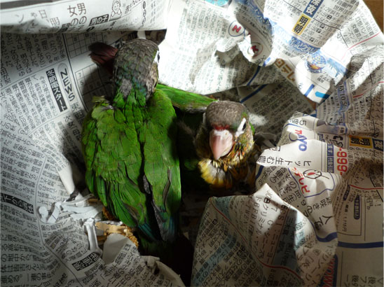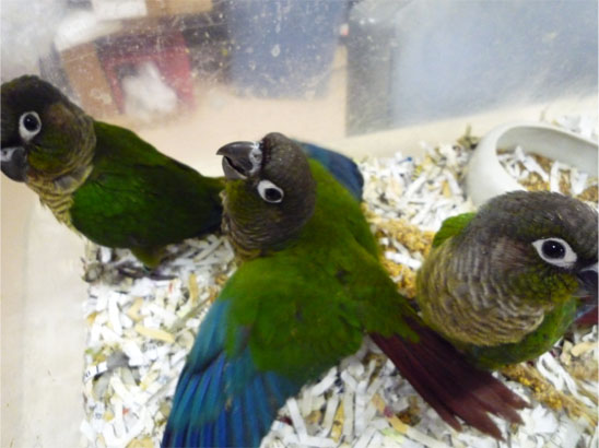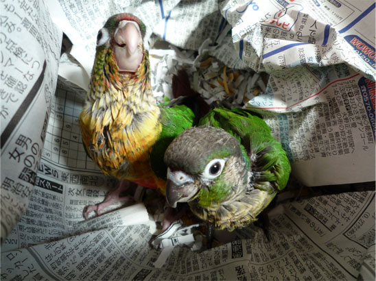 ワキコガネウロコメキシコインコと、ホオミドリウロコメキシコインコの1羽ずつです。