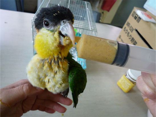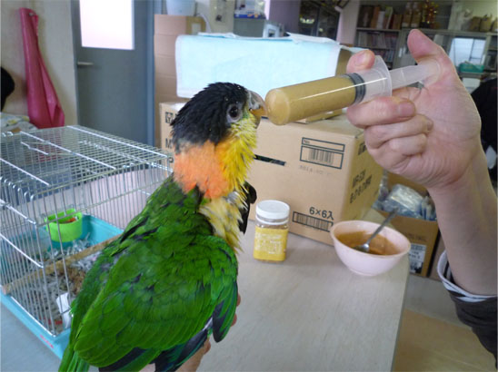 足に皮紐(?)を装着すべく里帰りしたのでした。