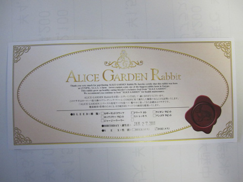 スペイン産のウサギには上記証明書が付いております。
